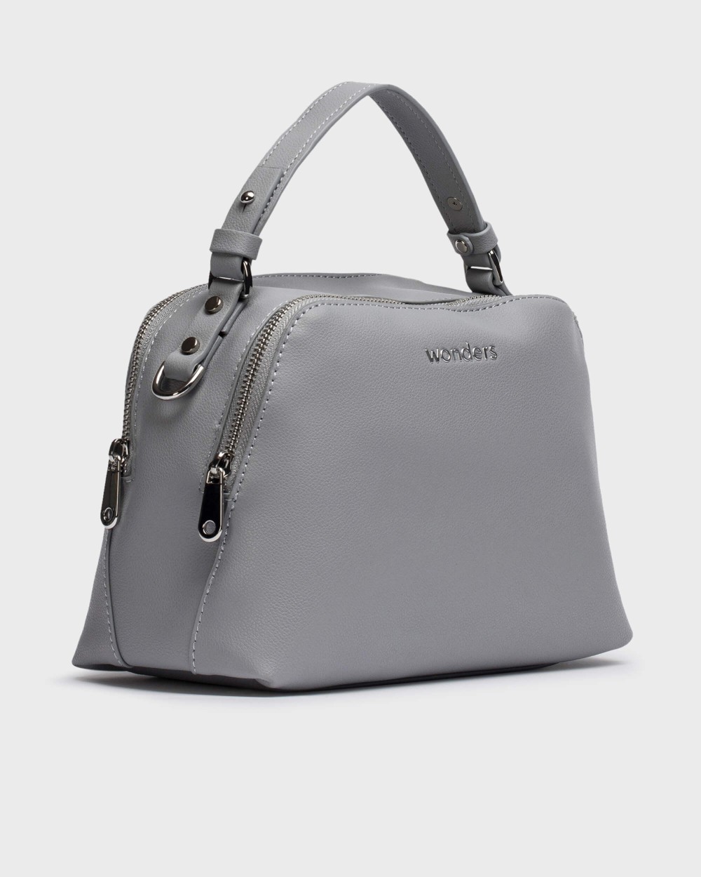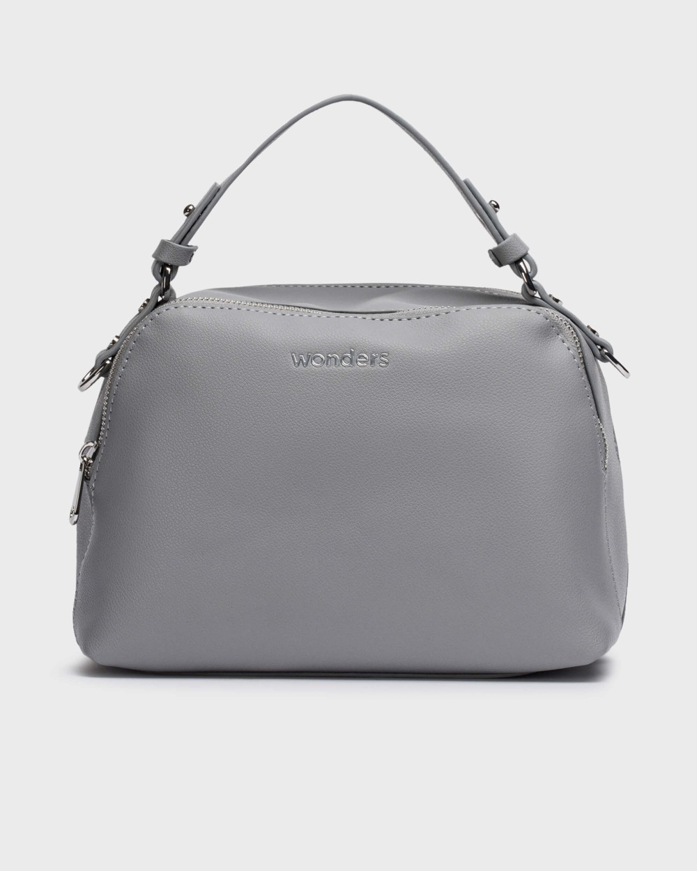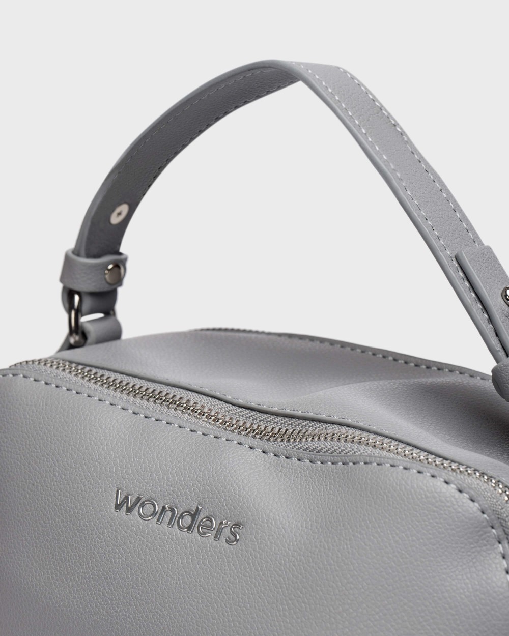 Sac de bowling en cuir synthétique de couleur grise. De taille moyenne, il est doté d'un double compartiment et d'une fermeture zippée. Bandoulière à main et bandoulière textile amovible. Double poche intérieure zippée, dont une avec sérigraphie de la marque. Un complément parfait à tes chaussures Wonders. Taille : 19 x 25 x 12cm