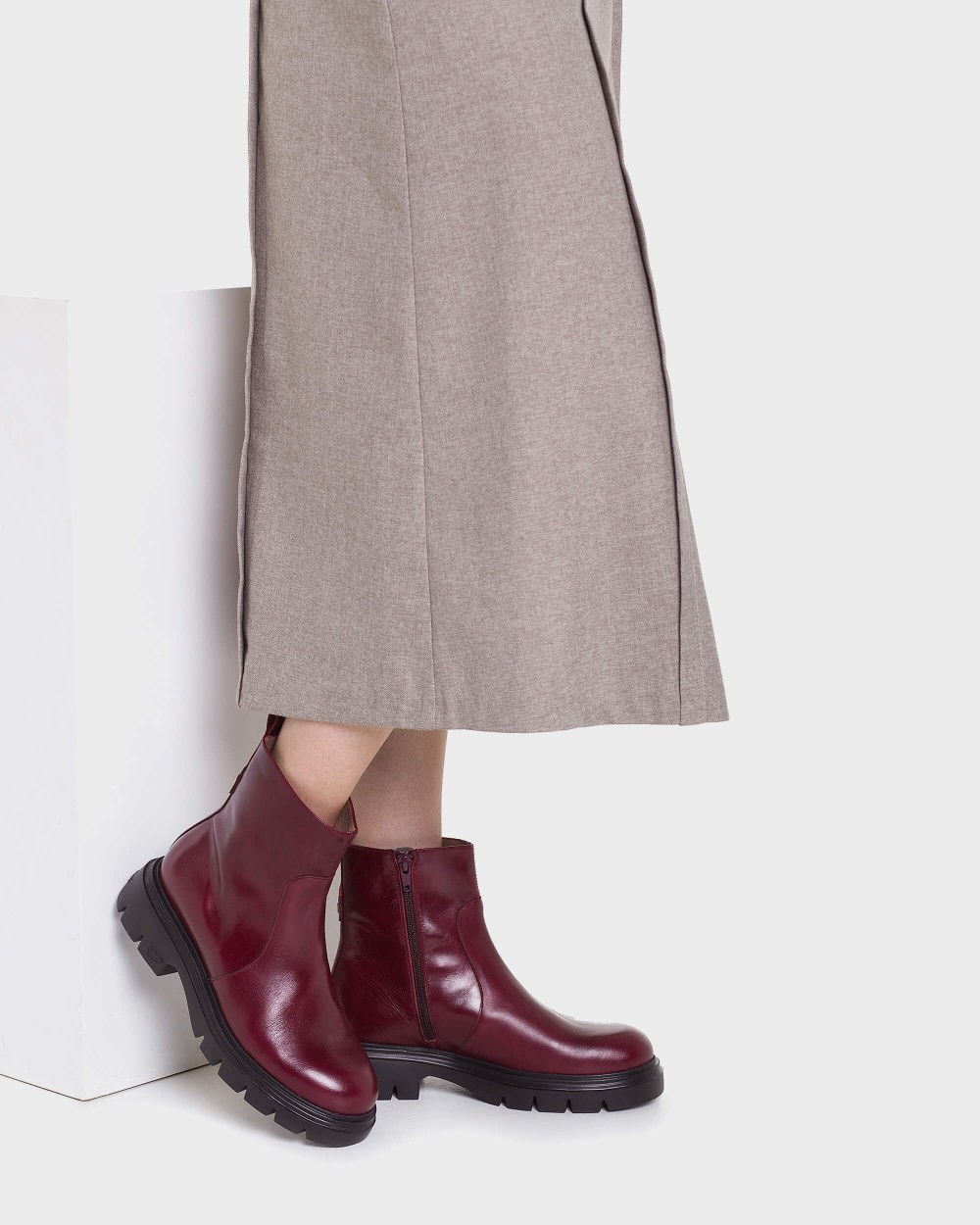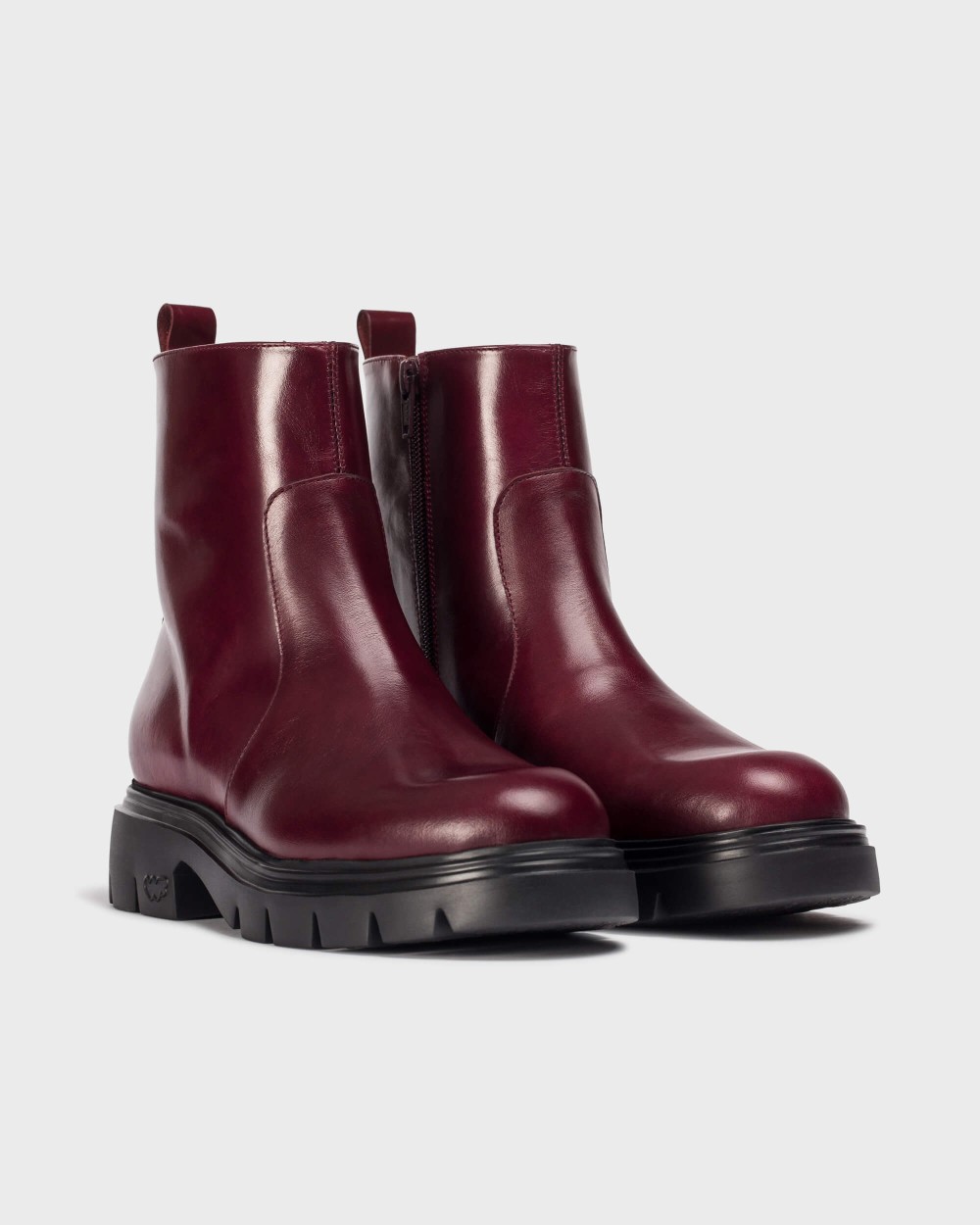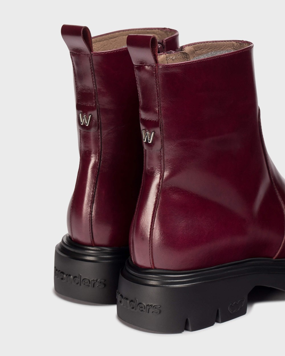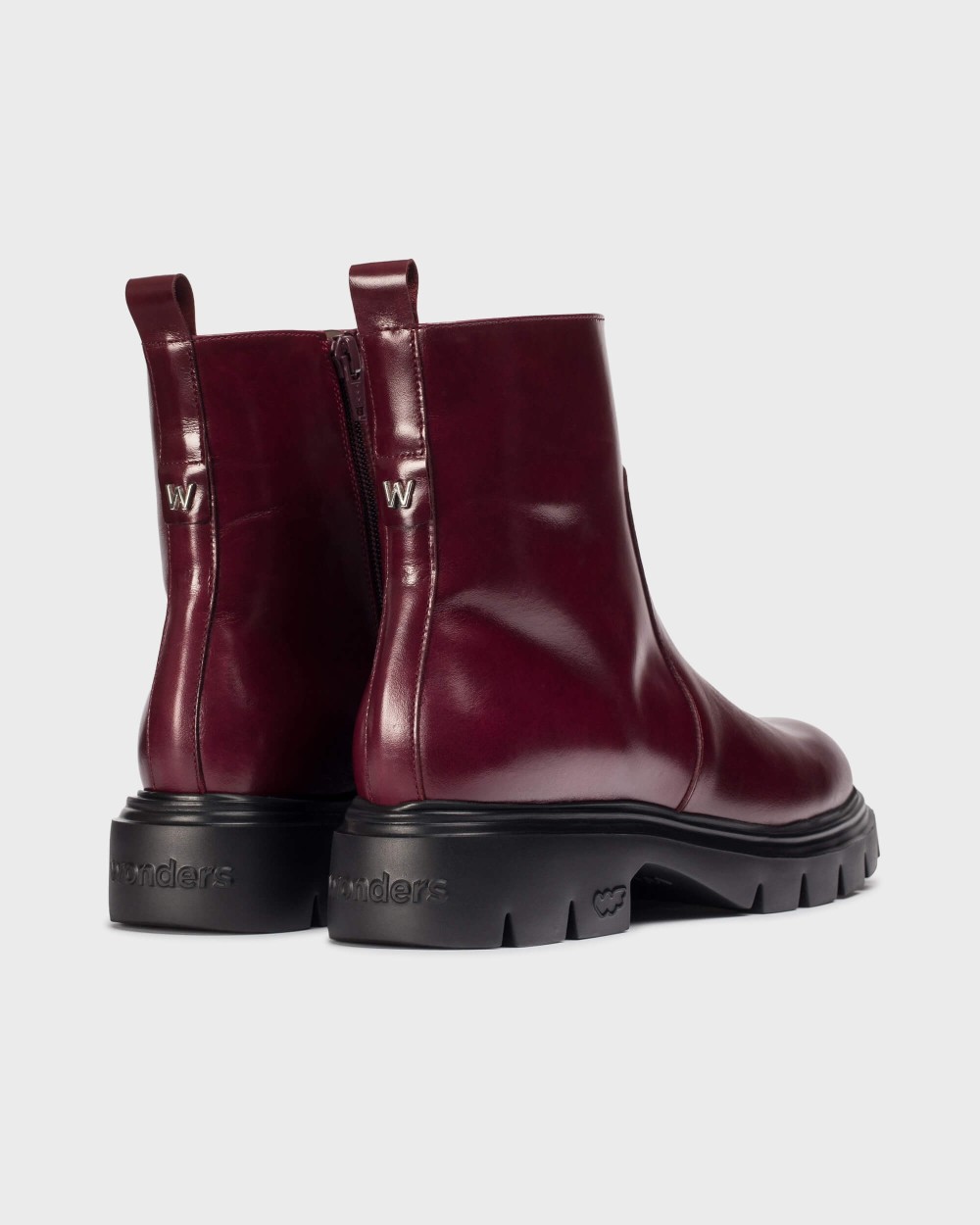 Buty za kostkę BONES 05 z bordowej gładkiej skóry. Ten model wyróżnia się wyrafinowanym i nowoczesnym designem, solidną sylwetką i podeszwą zapewniającą miejski charakter. Zakładka z tyłu ułatwia zakładanie, a cholewka do połowy łydki elegancko otula kostkę. Nowa technologia FlyGrip na podeszwie zapewnia niezwykłą lekkość i wygodę, a także doskonałą amortyzację i przyczepność. Wkładka MemoryGel idealnie dopasowuje się do stopy, zapewniając komfort przy każdym kroku. Przygotuj się na uczucie #YesWeFly. Wonders zobowiązuje się do odpowiedzialnej produkcji zatwierdzonej przez LEATHERWORKINGGROUP.