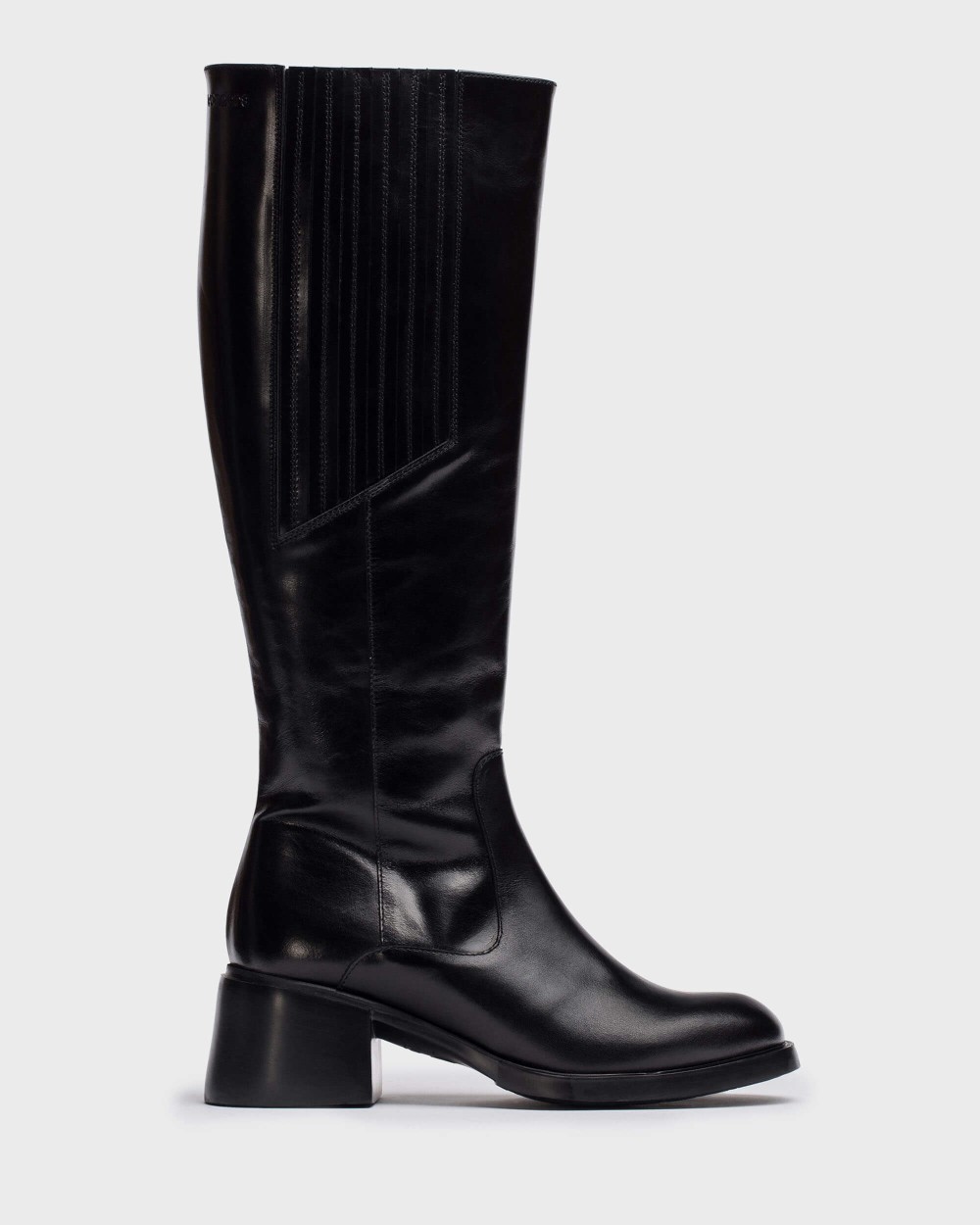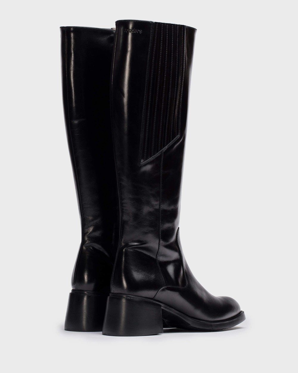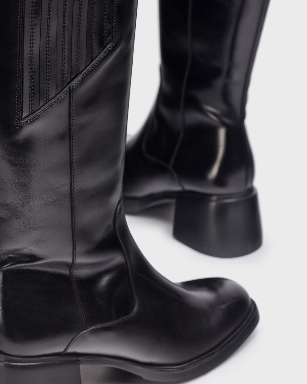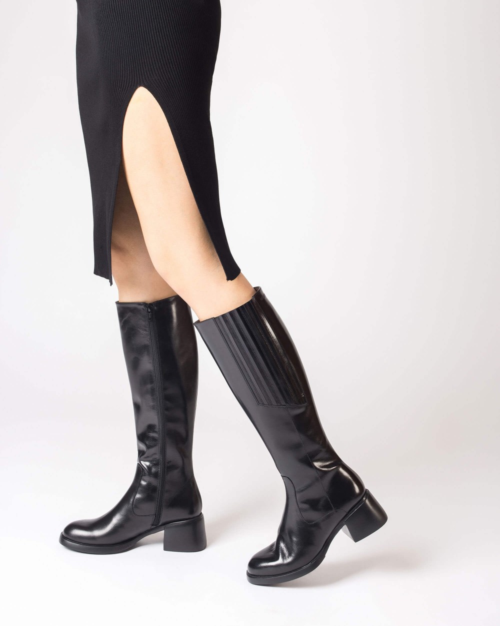 Damskie botki CHUCK 44, wykonane z gładkiej czarnej skóry. Ponadczasowy model z nowoczesnym akcentem, elastycznymi detalami z bocznymi przeszyciami i zapięciem na zamek błyskawiczny dla szybkiego i łatwego dopasowania. Podeszwa na platformie, opracowana w technologii WondersFly™, gwarantuje lekkość i wygodę. Wkładka MemoryGel zapewnia idealne połączenie jakości i komfortu. Przygotuj się na sensację! #yeswefly!!! Wonders wspiera odpowiedzialną produkcję poprzez LEATHERWORKINGGROUP.